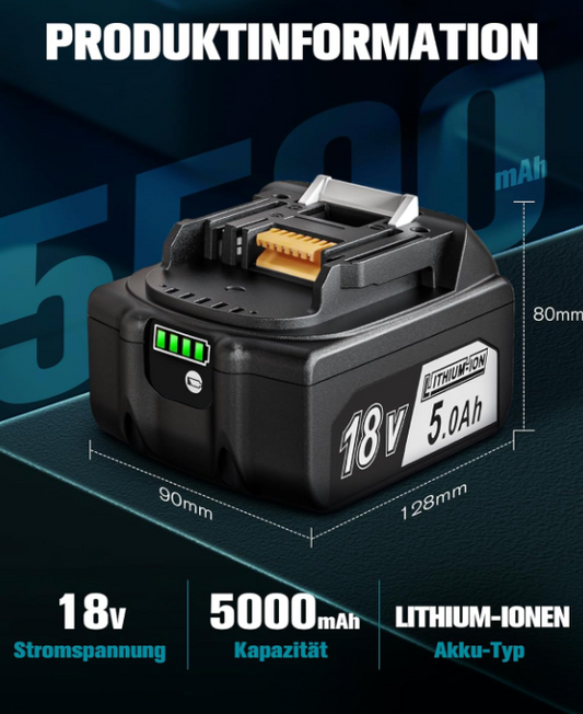 18V 5.0Ah Replacement Battery for Makita BL1850B / BL1860 / BL1840 – With LED Indicator